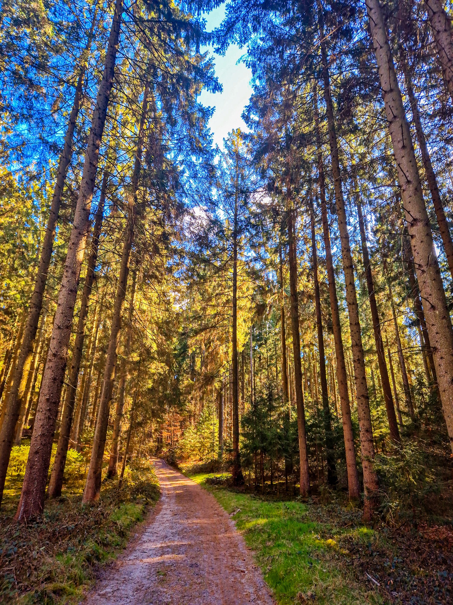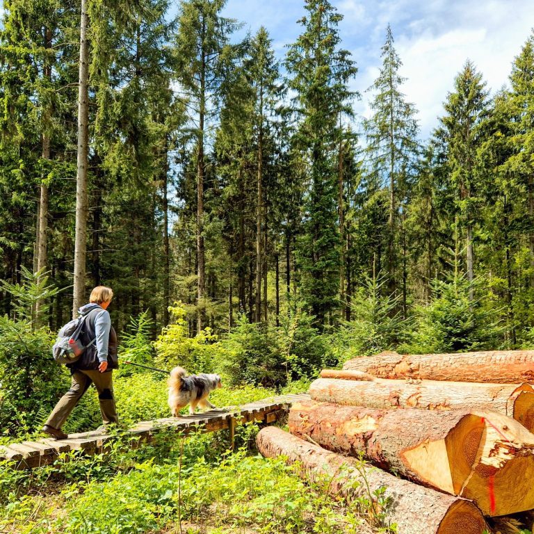 Diesmal zog es uns in den wunderschönen Naturpark Hüttener Berge – zehn Kilometer pures Naturerlebnis, begleitet von zwei Freunden und unseren Hunden. Die Route führte uns über sanfte Hügel und durch stille Wälder, in denen das Licht so wunderbar durch die Baumkronen fiel.