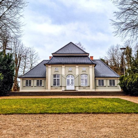 Ganz in der Nähe des Schlosses lädt eine wunderschöne Allee zum Flanieren ein, und direkt am See liegt ein kleiner Pavillon, der einen traumhaften Blick über das Wasser bietet – perfekt für eine kurze Pause oder ein schönes Foto.
